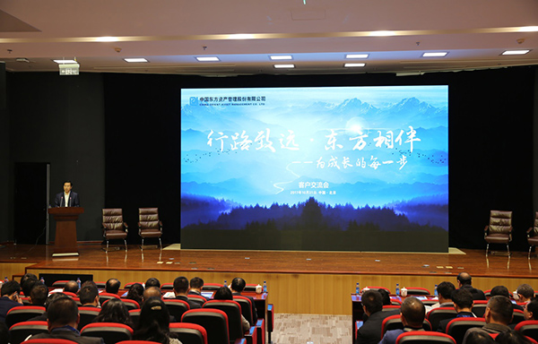 On October 31, China Orient Asset Management Co., Ltd. (“COAMC”) held customer exchange meeting themed on “Achieve Success Together with COAMC - For Every Growth to Success” at the hall of the Headquarters. Wu Yue - Secretary of the Party Committee and Chairman of the Board of Directors of COAMC attended the meeting and gave a speech. He expressed sincere thanks to the customers for their long-term support and help for COAMC and also expressed his expectations to go forward and make progress together with the customers in the aspects of focusing on main businesses and serving the real economy. The atmosphere was warm at the meeting site which was filled with distinguished guests. Over 200 people, including representatives of more than central enterprises, State-owned enterprises, China top 500 enterprises and public companies recommended by the units under the Group, as well as those accompanying them, participated in the customer exchange meeting.