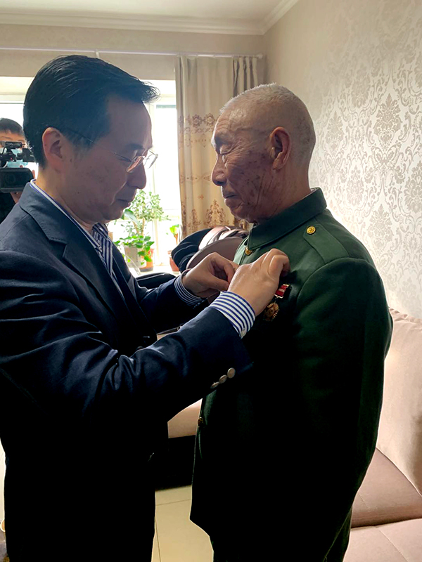 In commemoration of the 70th anniversary of the Chinese People's Volunteers' Participation in the War to Resist US Aggression and Aid Korea, Wu Yue, Secretary of China Orient Party Committee and Chairman, made a special trip to Xinjiang to visit and convey greetings to Liu Zuliang, a veteran of Chinese People's Volunteers Army, on the morning of October 28. In Liu's home, Secretary Wu Yue pinned the memorial medal to Liu’s coat, on which inscribed the words '70th Anniversary of the Chinese People's Volunteers Army's Fight to Resist US Aggression and Aid Korea', granted by the Central Committee of the Communist Party of China, the State Council and the Central Military Commission. Liu is a retired employee of China United Property Insurance Xinjiang Branch , a subsidiary of China Orient.